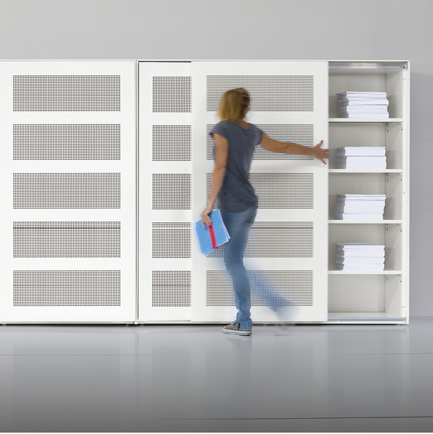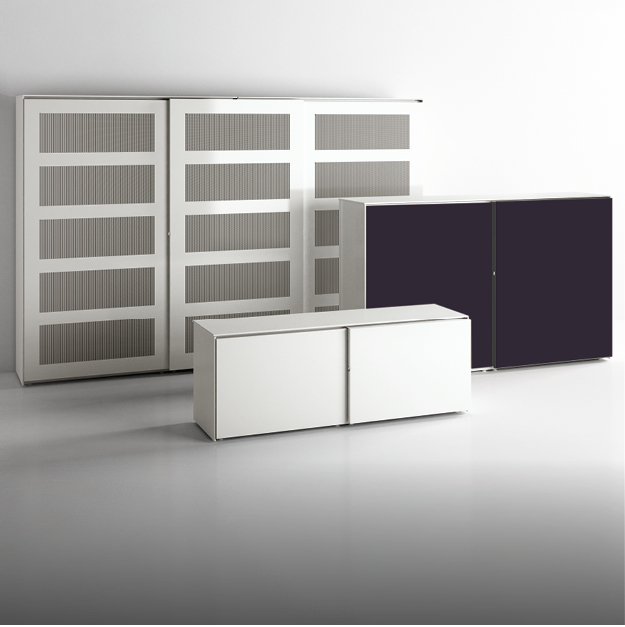 Con le sue due dimensioni modulari e le due diverse profondità, la nostra linea di armadi in metallo ad ante scorrevoli SLIDE&GO sarà sempre la soluzione ideale per ogni ambiente. Disponibile in versione due o tre porte, SLIDE&GO arriva ad essere lungo fino a più di tre metri! Ogni ripiano è regolabile all’altezza che preferisci, in modo che tu non debba più impilare o spiegazzare le tue cose per poterle riporre. Scegli la combinazione che preferisci e inizia ad apprezzare il silenzio, grazie alle nostre porte fonoassorbenti!